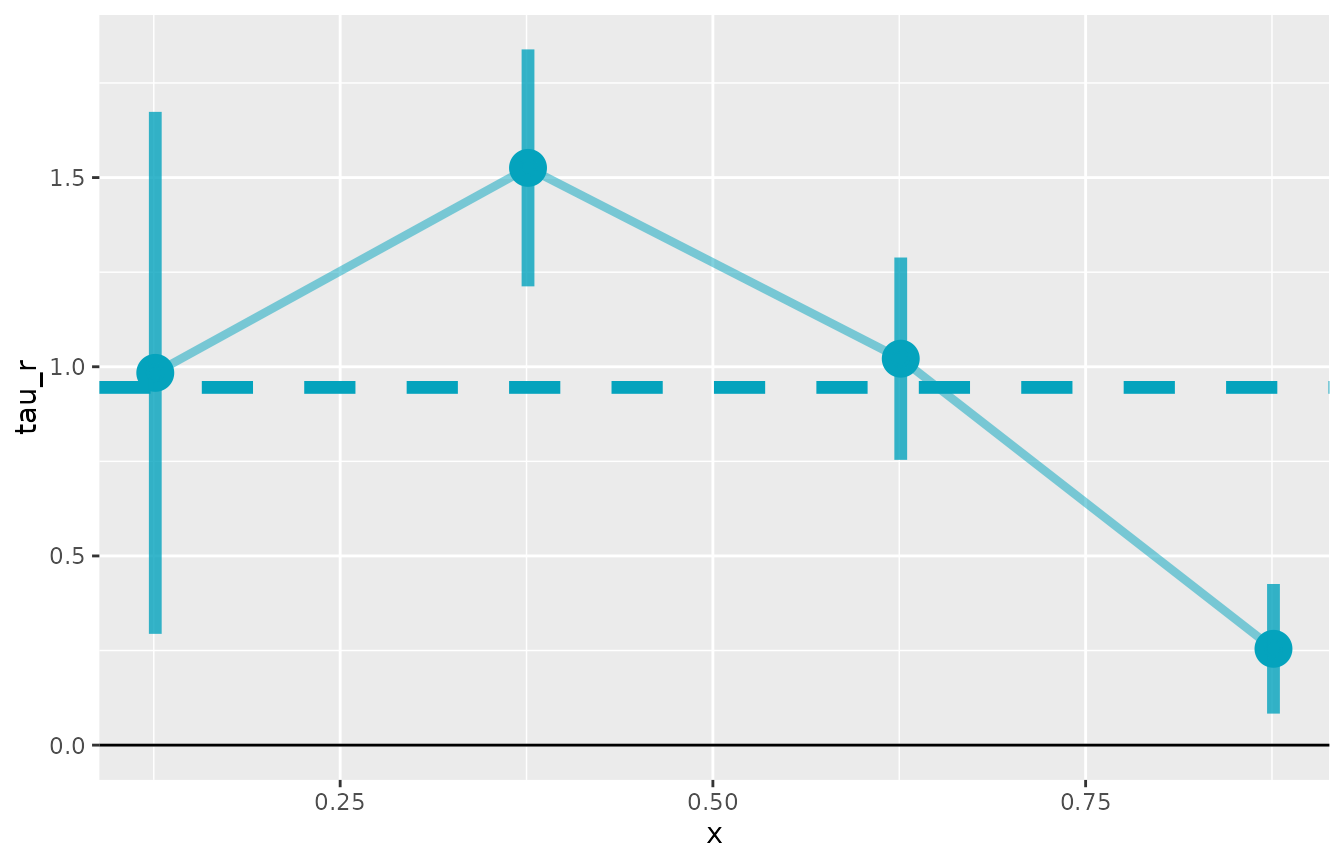 est <- iv.lls(info.sim, y = "Y", x = "posterior", r = "alpha_est",